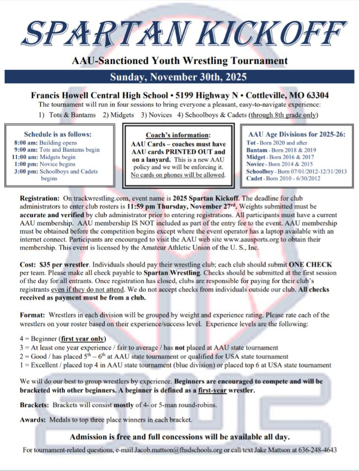 Spartan Kickoff Classic (AAU) Francis Howell Central High School 5199 Hwy N Cottleville, MO 63304 |
